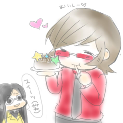 なので今日は克哉ちゃんUP。追記でワンクッションおいてます。 ------------------------------------------------------------------------------------------------------------------ 日曜日は友達の撥さばき見に小倉祇園へ行ってきます! 大きなお祭りに行くのは久しぶりなので当日はテンションおかしいかもしれないです(笑) あと今日、「真・ベルベットルーム」様に登録しましたので一応報告です。 では女体化大丈夫な方は追記からどうぞ。 2011.07.11 Mon 00:02:54 レッツダンス!いつも克哉さんばかりなのでたまには舞耶姉さんとタッちゃん。 タッちゃんはノリが良い人希望です。 最近もっとラブラブなパオ(薫)克と克哉ちゃんが描きたくてたまりません。毎日暑くて頭沸騰しまくりです。 そろそろ夏休みな雰囲気なので時間のあるうちに何か描きたいです。 -------------------------------------------------------------------------------------------------------------------- 最近熱帯夜が続いてクーラーが無い自室では快適に寝れなくなってきました・・・ アイスノン使ってて、便利で好きなんですが、使ってると後からだんだん邪魔になってきますね(笑)朝すごい生ぬるいよ! ではまた明日から学校頑張ります。またクラスマッチだよ! では拍手コメ返信で終わります! 拍手いつも嬉しいです!いつも励みになってます! >雪虫さま お久しぶりです。携帯サイトいらっしゃいませ! おお・・・ハッピーとは・・・嬉しいです>< 更新・サイト運営もっと頑張りますね(*>ω<*)雪虫さんも忙しいでしょうがサイト更新頑張ってください!いつも楽しみにしてます! ではコメントありがとうございました! >7月9日午前2時の方 ありがとうございます!復活しました! これからも頑張って更新しますね~。 ではコメントありがとうございました! 2011.07.07 Thu 23:48:26 オワッタァァァァ!!!七夕に間に合え!なラクガキ。 お菓子大好きな克哉さんの事だから七夕限定スイーツとかチェックしてそう。七夕ケーキ食べたかったな・・・(何) ------------------------------------------------------------------------------------------------------------------ 期末テストようやく終わりました!お久しぶりです!! テスト終わってひと段落したので、明日からはまた通常通りに更新します。1日1絵も復活です! またいっぱいパオ克描くぞ!にょたで百合百合なパオ克もちょこっと描きたい・・・かも・・・? あと、携帯サイトはじめました。リアタイ付きです。 PCサイトだと時々友人から画面がおかしくなって見辛いと聞いたので・・・。 PCサイトよりは作品少ないかもですが、暇な時に見てやってくださいませ~。 その内モチベがあったらどっかの携帯ランキングさんに登録してみたいです・・・! あと、明日と月曜日はクラスマッチがあるらしいです。また暫く早帰りだね!やったねタエちゃん! では拍手コメの返信で終わります! >6月28日22時の方 うわわ!テスト中で全然更新しなかったのにコメントありがとうございました!お陰さまで私頑張れました!! これからまた更新頑張りますね(*´ ヮ `*)b ではまた! 2011.06.27 Mon 01:14:28 サイト名とテストアイスをほおばる克哉さん。「アイスいるか?」と聞いている相手はご想像におまかせします。 私的にはパオでもタッちゃんでも舞耶姉さんでもうららさんでもおいしいです! そして最近本格的に暑くなってきましたね!九州はいつも暑くてきついとです。水分と塩分とらんといかんばい! 毎晩熱帯夜なので少しでも涼しくなるベッドシートが欲しいです。今度、雑貨さん行きたいなぁ・・・ ----------------------------------------------------------------------------------------------------------------- サイト名を思い切って変えてみました。由来はポンと頭に浮かんだだけでとくにありません(笑) 最近は前も言った気がしますが、忍者ツールズさんとこのサーバーがちょっと不安定で心配です。こないだ短期間だけど携帯でHPの管理画面おかしくなってて怖かった・・・! お引越しもたまに考えたりはするんですが・・・ナノとかFC2とかの方が良いんだろうか・・・(汗) とりあえず、テストも控えてるのでそれはまた今度で。 テスト今週からなので今週からテスト終わるまで更新はお休みしますー。 今回は1日1絵もお休みです。作文やばい・・・!! では最後に拍手コメ返信です。いつもありがとうございます!! >6月24日23時44分の方 うひー!ありがとうございます>< セクシーな舞耶姉さんもいいですよね・・・!拍手絵喜んでいただけて嬉しいです(~*´ω`*) ではテスト明けにまた! |